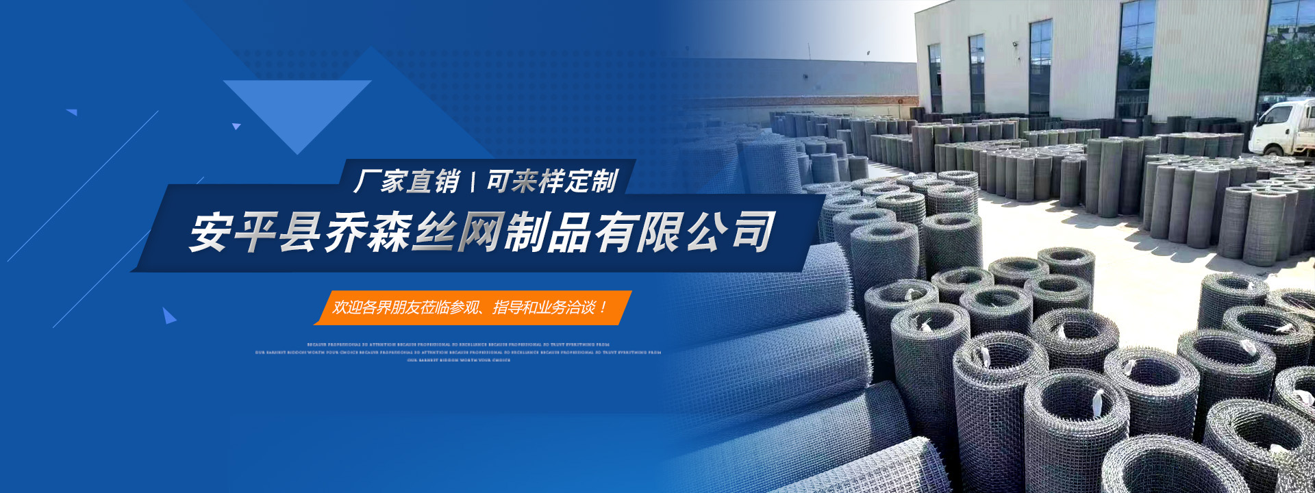 喬森絲網(wǎng)成立于2014年9月,位于中國絲網(wǎng)之鄉(xiāng)-河北省安平縣,是一家專注于生產(chǎn)金屬絲編織網(wǎng)、金屬網(wǎng)板沖孔及相關(guān)金屬裝飾絲網(wǎng)深加工產(chǎn)品的企業(yè)。從一個家庭式的小工坊到公司多年來,一直本著以“質(zhì)量求生存,信譽謀發(fā)展”的生產(chǎn)原則兢兢業(yè)業(yè)穩(wěn)步向前,贏得了 一大批忠實客戶的廣泛贊譽。然騏驥一躍,不能十步,駑馬十駕,功在不舍。我們將以更周到的服務,更過硬的質(zhì)量,不忘初心,為廣大的客戶提供更優(yōu)質(zhì)的服務。